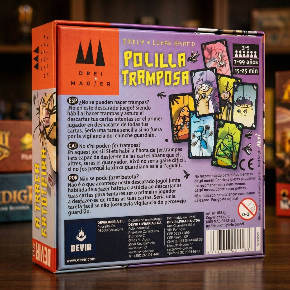 Olvida todo lo que te enseñaron sobre el "fair play". En Polilla Tramposa, las reglas están para romperse. Ganador del prestigioso Deutscher Spielepreis al Mejor Juego Infantil, este título ha revolucionado las mesas de juego convirtiendo lo prohibido en la mecánica principal. Aquí no gana el mejor estratega… gana el tramposo más hábil y descarado.